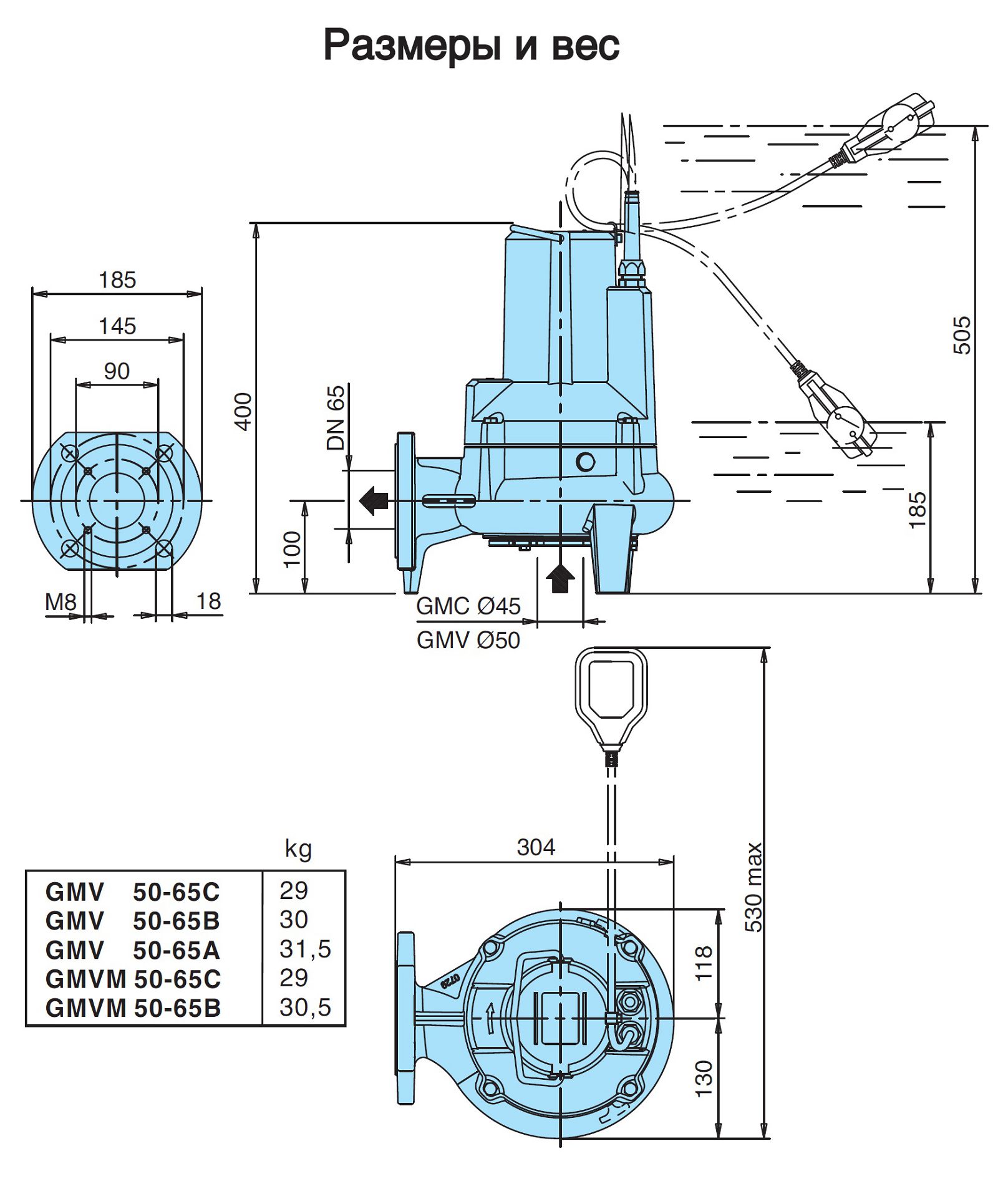 GM50 - погружные центробежные электронасосные агрегаты, выполненные из чугуна, предназначены для откачивания загрязненных вод, содержащих механические примеси с частицами диаметром до 45 мм.