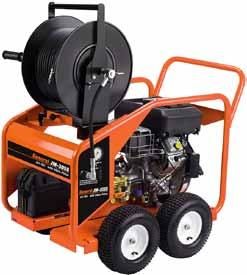 Рама на 4х колесах, бензиновый двигатель ZONGSHEN 24 л.с., насос: 150 бар - 50 л/мин, Hawk (Италия), металлический барабан, шланг 80 м х 10 мм, 2 насадки (очистная и пробивная), ящик для инструментов.