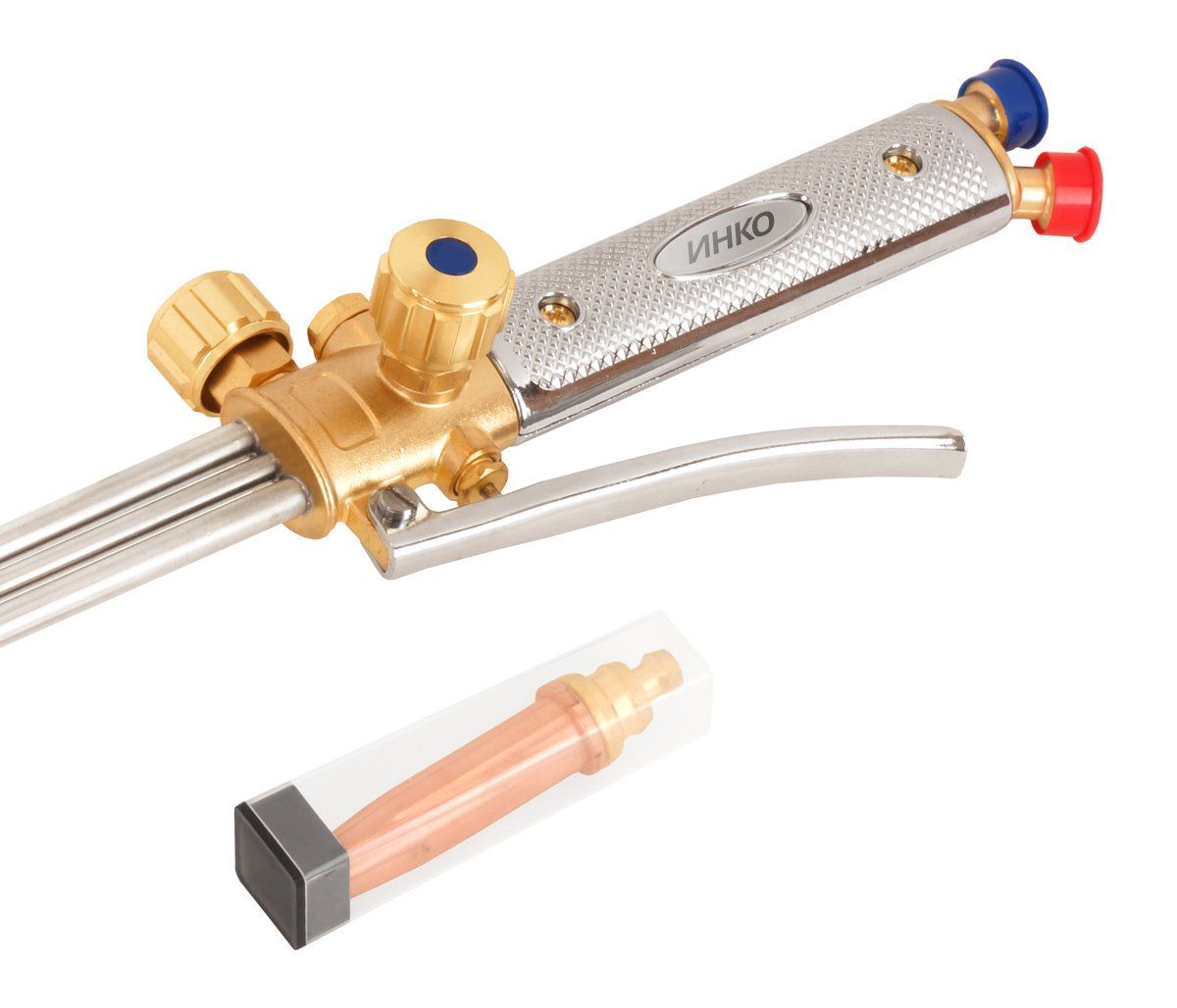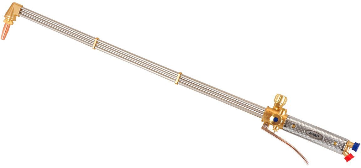 Удлиненный трехтрубный рычажный резак Р3П (А) «ИНКО-250П» с внутриголовочным смешиванием газа предназначен для ручной газокислородной разделительной резки нелегированных и низколегированных, низкоуглеродистых сталей толщиной до 250 мм.