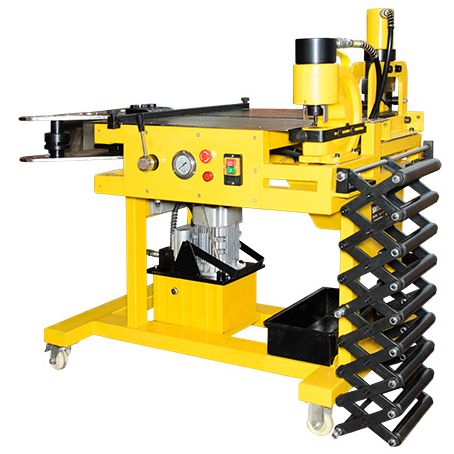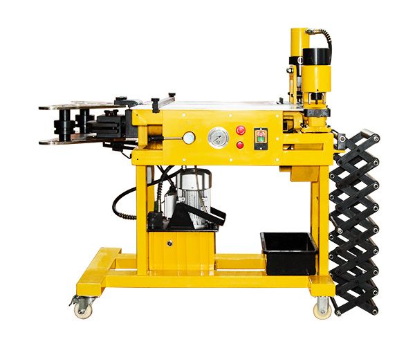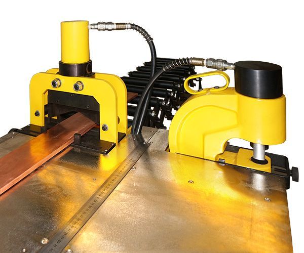 - Модернизированный перфоратор оборудован параллельным упором, позволяющим пробивать отверстия на фиксированном расстоянии от края шины. По желанию клиента возможна установка на станок перфоратора, оборудованного автоматическим прижимом шины. Перфоратор расположен у края рабочего стола, для удобства перфорации в уже изогнутой шине;