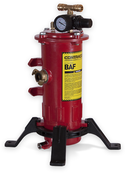 Фильтр очистки воздуха дыхания Contracor BAF предназначен для очистки сжатого воздуха, который подаётся в пескоструйный шлем оператора. Воздух обычно подаётся от того же компрессора, от которого запитан пескоструйный аппарат. Такой сжатый воздух необходимо очистить от твёрдых частиц и масла, которые компрессор выбрасывает в пневмосеть. Также фильтр позволяет изменять давление сжатого воздуха, чтобы пескоструйщику было комфортно дышать.
