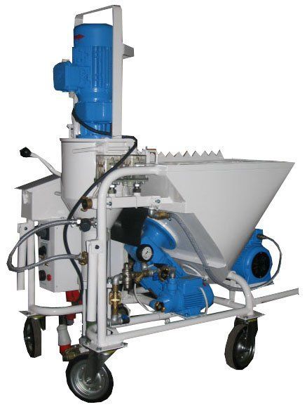 Штукатурная станция предназначена для изготовления, транспортирования и нанесения сухих смесей (укрепляющая штукатурка, наливные полы, клеевые смеси, гипсоизвестковая штукатурка и т.д.).