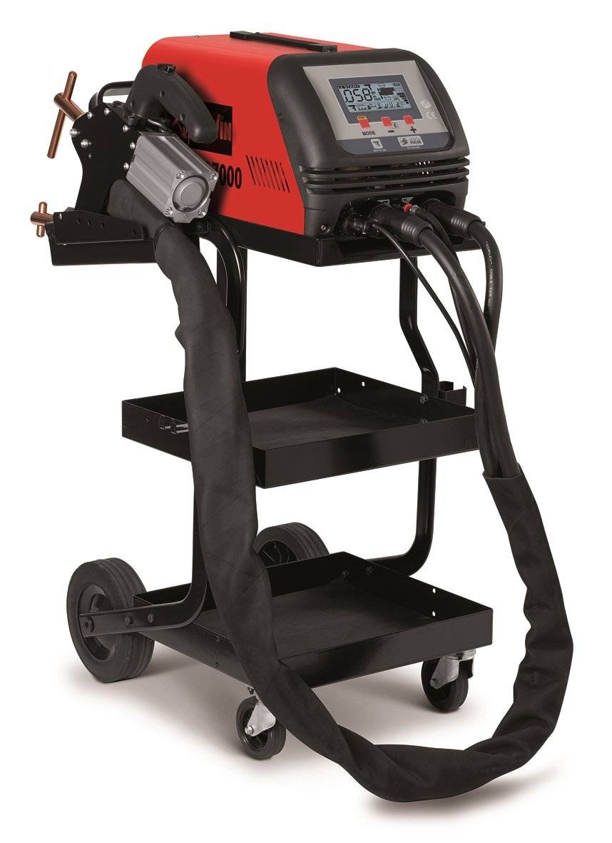 Telwin DIGITAL SPOTTER 7000 400V +ACC сварочный аппарат с микропроцессорным управлением, предназначенный для точечной сварки тонкостенного металла. Применяется в авторемонтных мастерских, производственных площадках. Многофункциональный ЖК-дисплей обеспечивает автоматическое регулирование параметров точечной сварки в зависимости от выбранного инструмента и толщины листа.