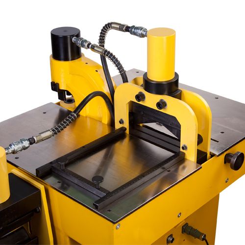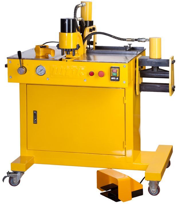- Станок представляет собой одноконтурные гидравлические прессы для резки, гибки и перфорации, смонтированные на раме и приводимые в действие гидравлической насосной станцией;