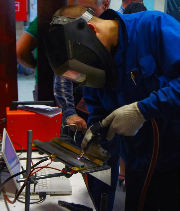 - Имитировать процесс сварки с помощью реальной малоамперной сварочной дуги;