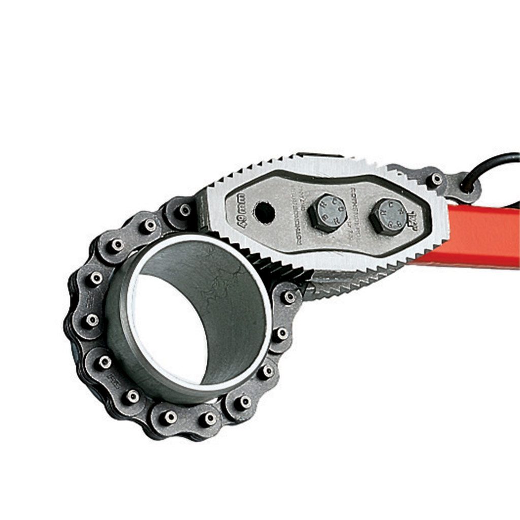 Цепной трубный ключ Rothenberger HEAVY DUTY 4 70244 - прочный и надежный ручной инструмент для выполнения слесарно-монтажных работ. Изделие обеспечивает крепкий обхват трубы. Ключ имеет правый и левый ход, такой принцип работы осуществляется благодаря двусторонней зубчатой поверхности головки.