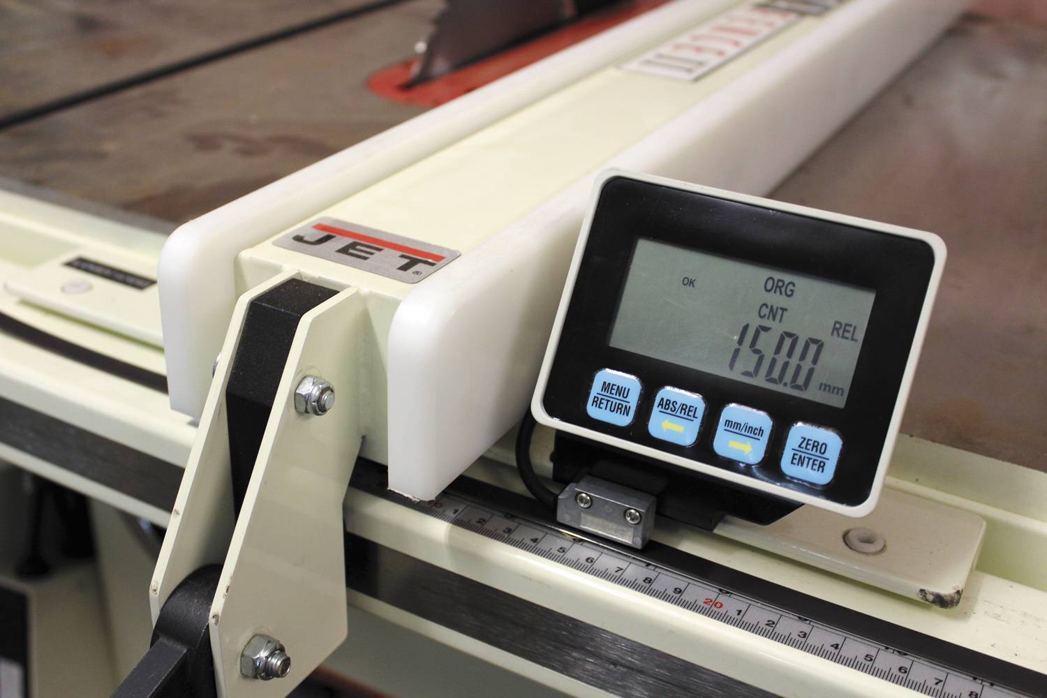Поскольку пила не ориентирована на эксплуатацию с кареткой (такова особенность американской столярной практики), основное внимание уделено работе с параллельным упором. Его жесткая конструкция обеспечивает распиловку с точностью до 0,15 мм по длине заготовки, даже, несмотря на, одностороннюю фиксацию. Благодаря фторопластовым накладкам с двух сторон обеспечена высокая долговечность, легкость скольжения и отсутствие на заготовке черных следов от алюминия. Опционально упор можно оснастить системой отображения ширины распила на ЖК-индикаторе. В процессе эксплуатации может возникнуть необходимость юстировки параллельности диску, для этого предусмотрены регулировочные винты.