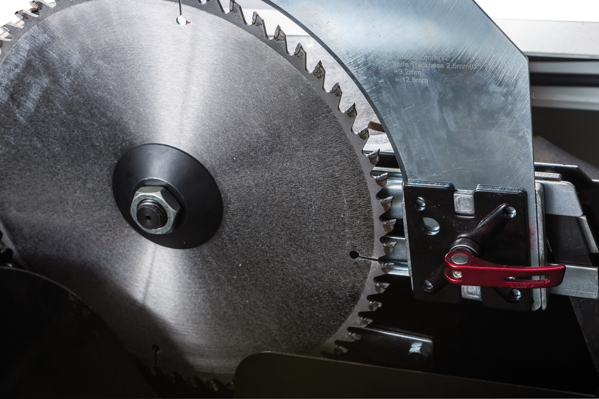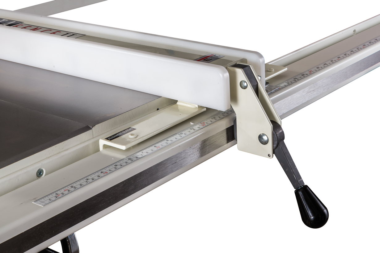 Поскольку пила не ориентирована на эксплуатацию с кареткой (такова особенность американской столярной практики), основное внимание уделено работе с параллельным упором. Его жесткая конструкция обеспечивает распиловку с точностью до 0,15 мм по длине заготовки, даже, несмотря на, одностороннюю фиксацию. Благодаря фторопластовым накладкам с двух сторон обеспечена высокая долговечность, легкость скольжения и отсутствие на заготовке черных следов от алюминия. Опционально упор можно оснастить системой отображения ширины распила на ЖК-индикаторе. В процессе эксплуатации может возникнуть необходимость юстировки параллельности диску, для этого предусмотрены регулировочные винты.