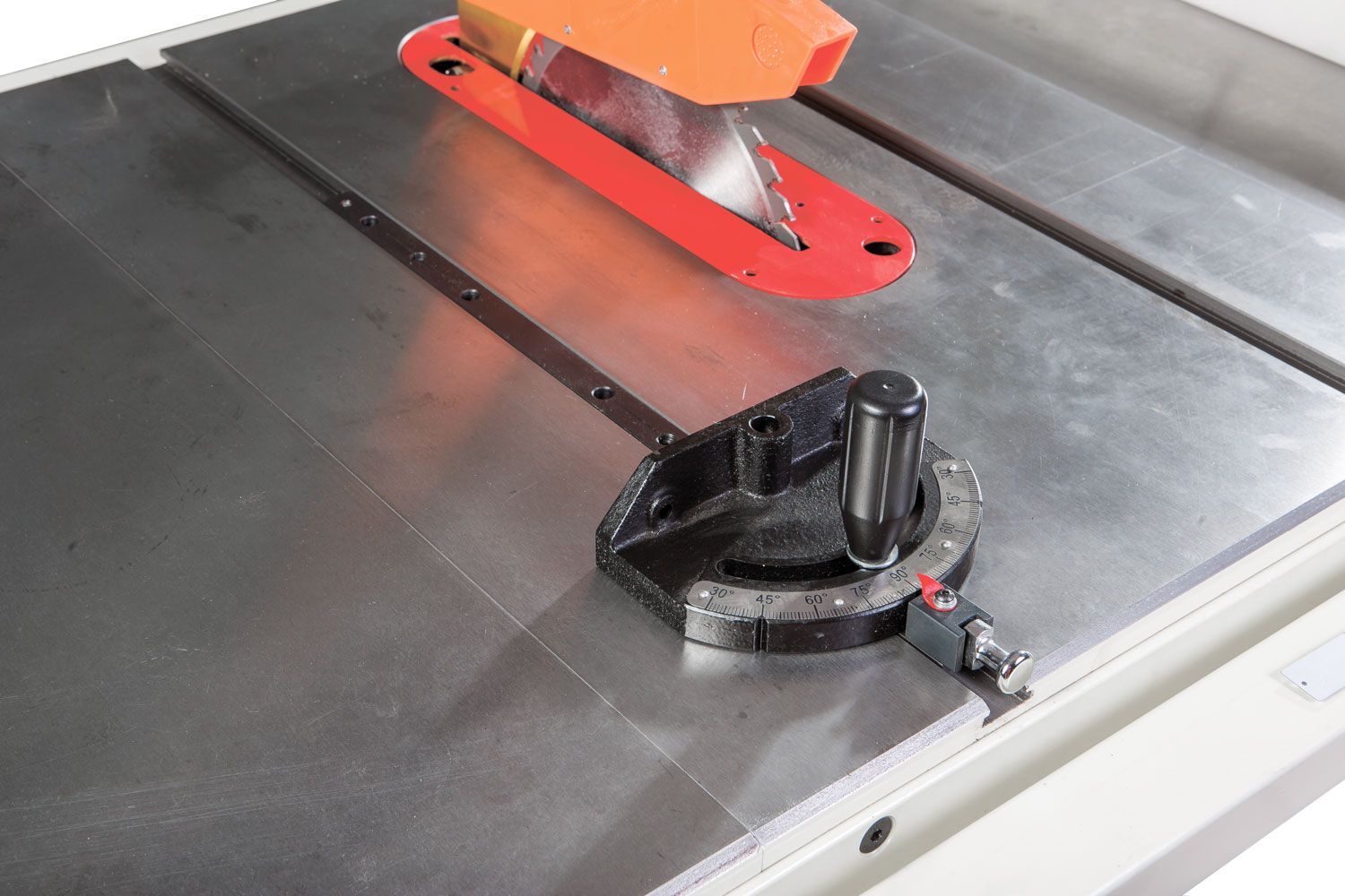 Штатная комплектация включает в себя два чугунных расширителя и параллельный упор с фторопластовыми накладками и эксцентриковой фиксацией на 50-дюймовых направляющих. Все ответственные детали выполнены из массивных чугунных отливок, регулировки высоты и наклона диска производят крупными маховиками, предусмотрена возможность точной юстировки его крайних положений. Такое оснащение, характерное для более дорогих моделей, само по себе делает JTS-250CSX выгодным приобретением. Но есть и другие преимущества: к примеру, конструкция пильного модуля позволяет устанавливать дисковую пазовую фрезу Dado (поставляется за отдельную плату). Для расширения возможностей при работе с этим комплектом доступно в качестве опции шипорезное приспособление. Это зажим для заготовок с возможностью перемещения вдоль Т-образного паза.