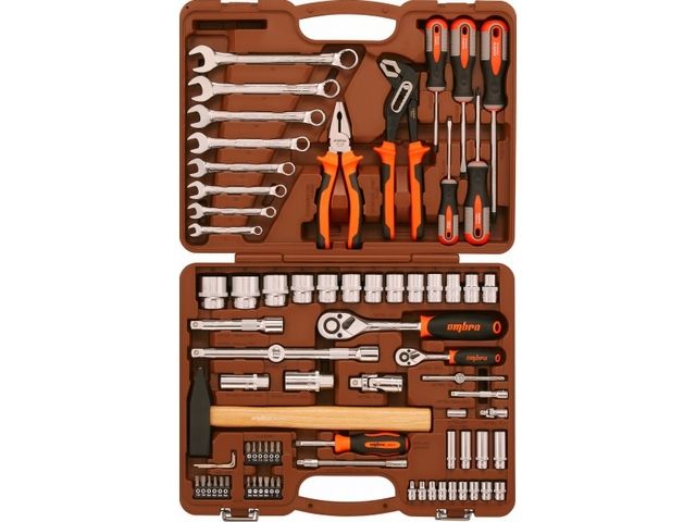 Набор инструментов универсальный 1/4" и 1/2"DR, 77 предметов (головки 12 граней), OMT77S12, Ombra, Набор инструмента универсальный с 12-гранными головками, 77 предметов.