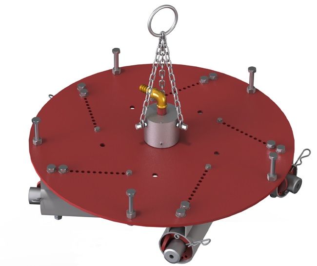 - для бокового и донного уплотнения футеровки - 2, 3, 5, 6-головочные (могут уплотнять огнеупорную смесь при разных диаметрах шаблона, для этого с помощью регулировочных винтов, установленных по периметру рамы, трамбовка-вибратор фиксируется в шаблоне любого диаметра существующих индукционных печей).