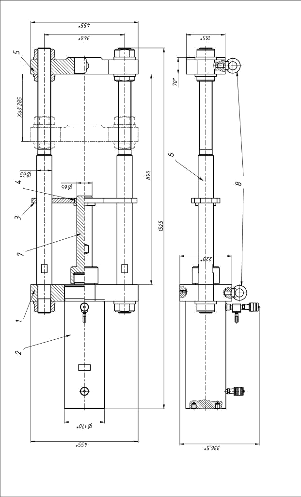 Выпрессовщик гидравлический предназначен для выпрессовки и запрессовки пальцев цепей гусеничной машины. Выпрессовщик может быть использован в качестве пресса для запрессовки, выпрессовки деталей в соединениях с натягом.