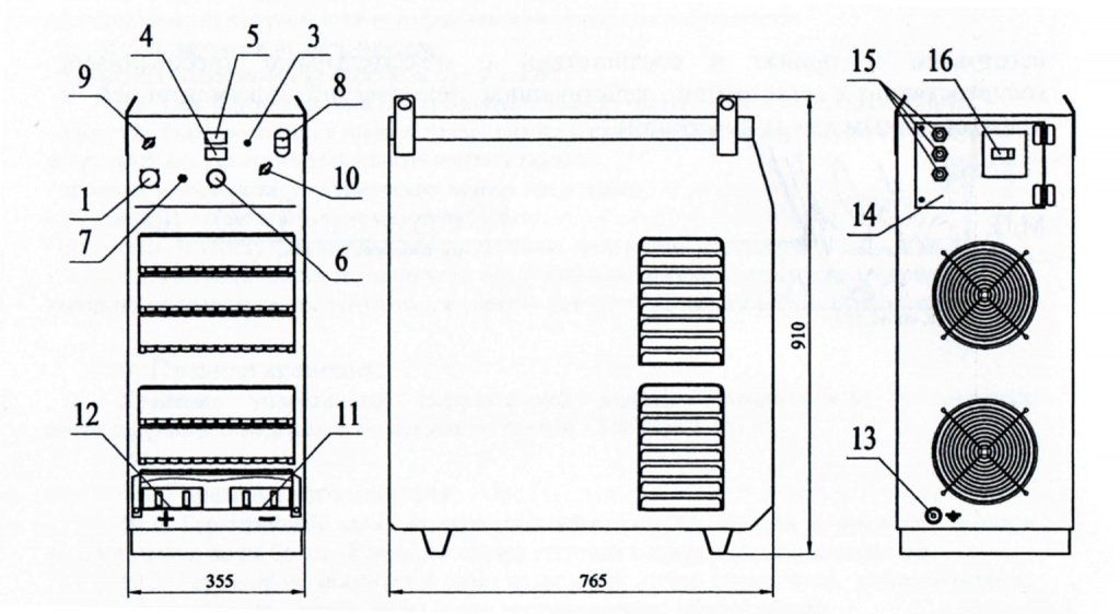 - Переключатель выбора ступеней индуктивности сварочной цепи;