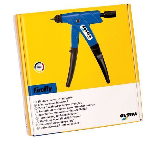 - следствием этого является возможность работать заклепочником FireFly, используя только одну руку. После устаноки заклепки необходимо развести рукояти заклепочника до щелчка;