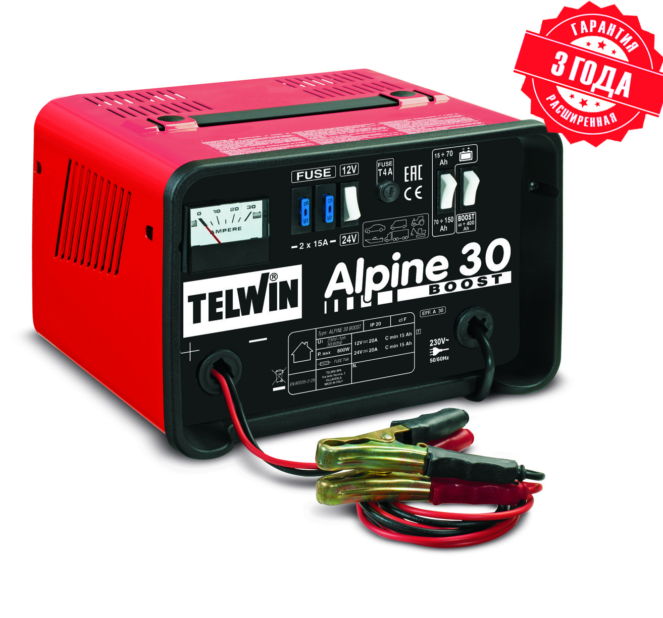 Зарядное устройство Telwin ALPINE 30 BOOST 230V 12-24V предназначено для зарядки аккумуляторов со свободным электролитом (WET) напряжением 12/24В.