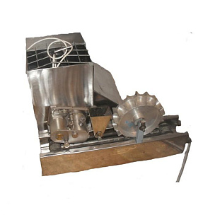 Для начала роботы на этом устройстве также надо заготовить фарш и тесто. Пельмени выходят из станка в виде полумесяца, но, по сравнению с первым прибором, юбочка у пельменей намного больше. Благодаря этому, можно соединить края и получатся пельмени, которых не отличить от домашних. В конце рабочего процесса приспособление можно перевезти на другое место, что значительно экономит пространство. Поговорим о свойствах. Мощность значительно больше, чем у предыдущего - 1500 Вт, напряжение такое же - 380 В (но можно сделать 220 В ) за час работы можно получить примерно 70-100 кг готовых пельменей с массой от 6 до 20 грамм.