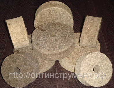 Торцы круга зачищают на шлифовальных кругах. Склеенный из отходов войлочный или фетровый круг после обработки испытывают на прочность с перегрузкой на 50% против рабочей скорости. Изготовленные этим способом войлочные круги по прочности не уступают цельным кругам, полностью обеспечивают условия техники безопасности при работе с окружной скоростью до 35 м/сек и качество обработанной поверхности деталей по установленным техническим требованиям.
